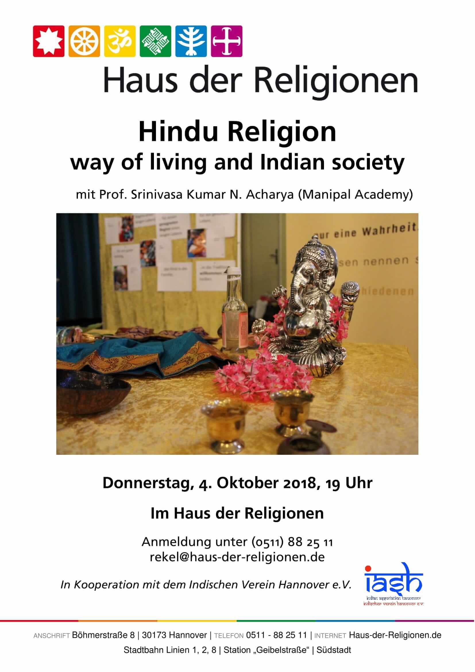 The Indian Association Hannover in cooperation with the Haus der Religionen, Manipal University of Higher Education and Leibniz University Hannover organized a special Talk on Hindu Religion, way of living and Indian Society on 4th October 2018, in Haus der Religionen, Hannover.
